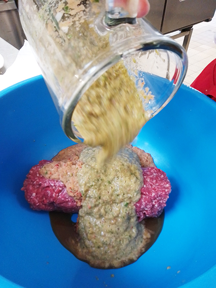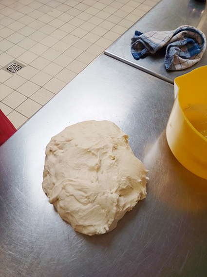 Zusätzlich haben die Jugendlichen entschieden, die „türkische Pizza“ noch mit Salat und mit einem selbstgemachten Knoblauch-Dip zu nappieren (gleichmäßiges Überziehen oder Überdecken von Speisen).